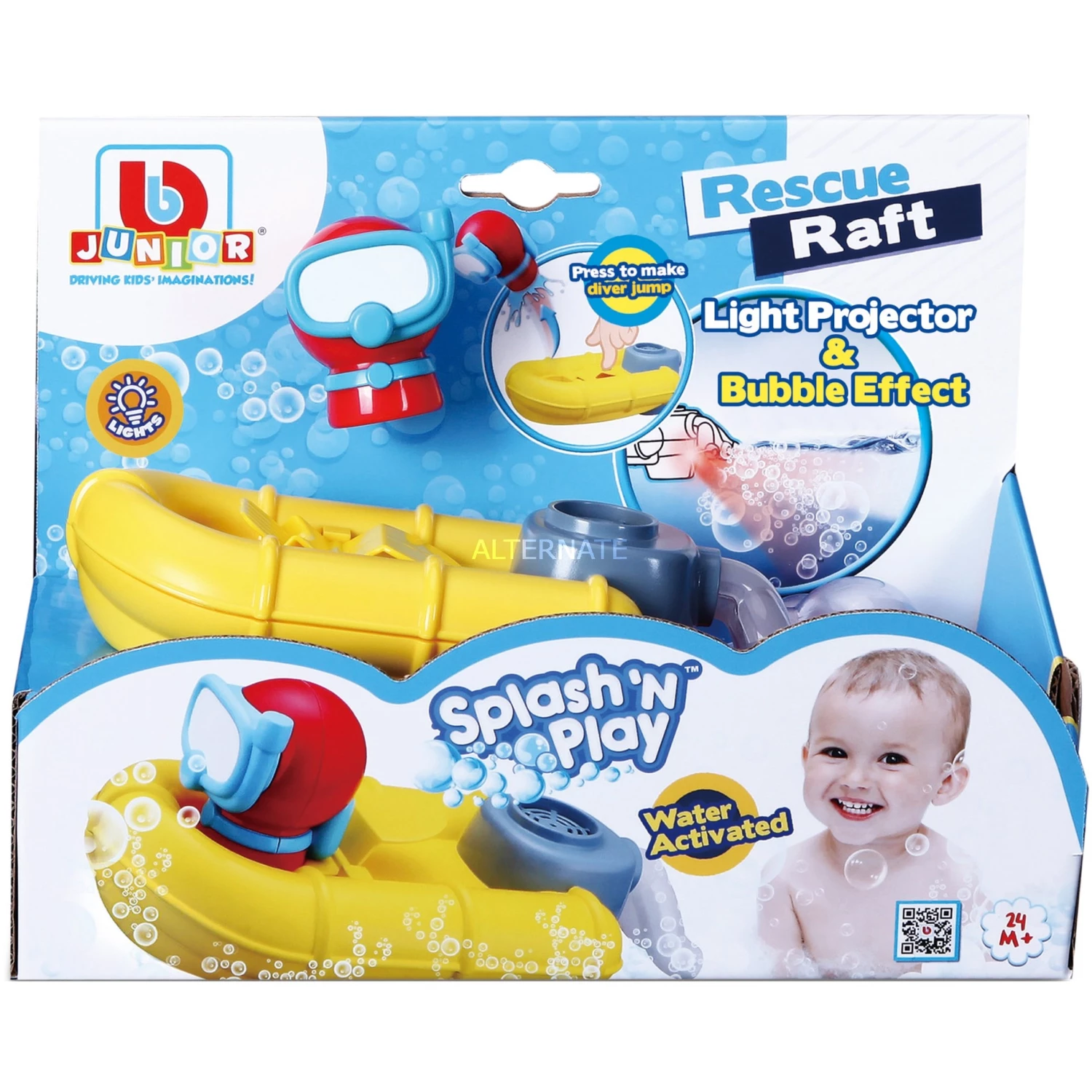 Das Spielzeugboot „Splash’N Play Rescue Raft“ von BB Junior sorgt für eine Menge Badespaß bei den Kleinen. Einfach das Boot ins Wasser der Badewanne oder des Pools setzen und schon aktiviert sich automatisch der Licht- und Bubble-Effekt. Das tolle Boot fördert das Verständnis des Ursache-Wirkungs-Prinzips der Kleinen und bietet zudem noch großen Spielspaß. Geeignet ist das Boot für Kinder ab 24 Monaten.