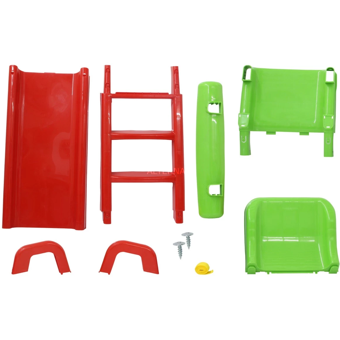| Inhalt/Ausstattung | Rutsche, mit, Rutschauslauf, für, sanfte, Landungen, breite, Stufen, und, Sicherheitsgriffe, Stabilisierungsseil |