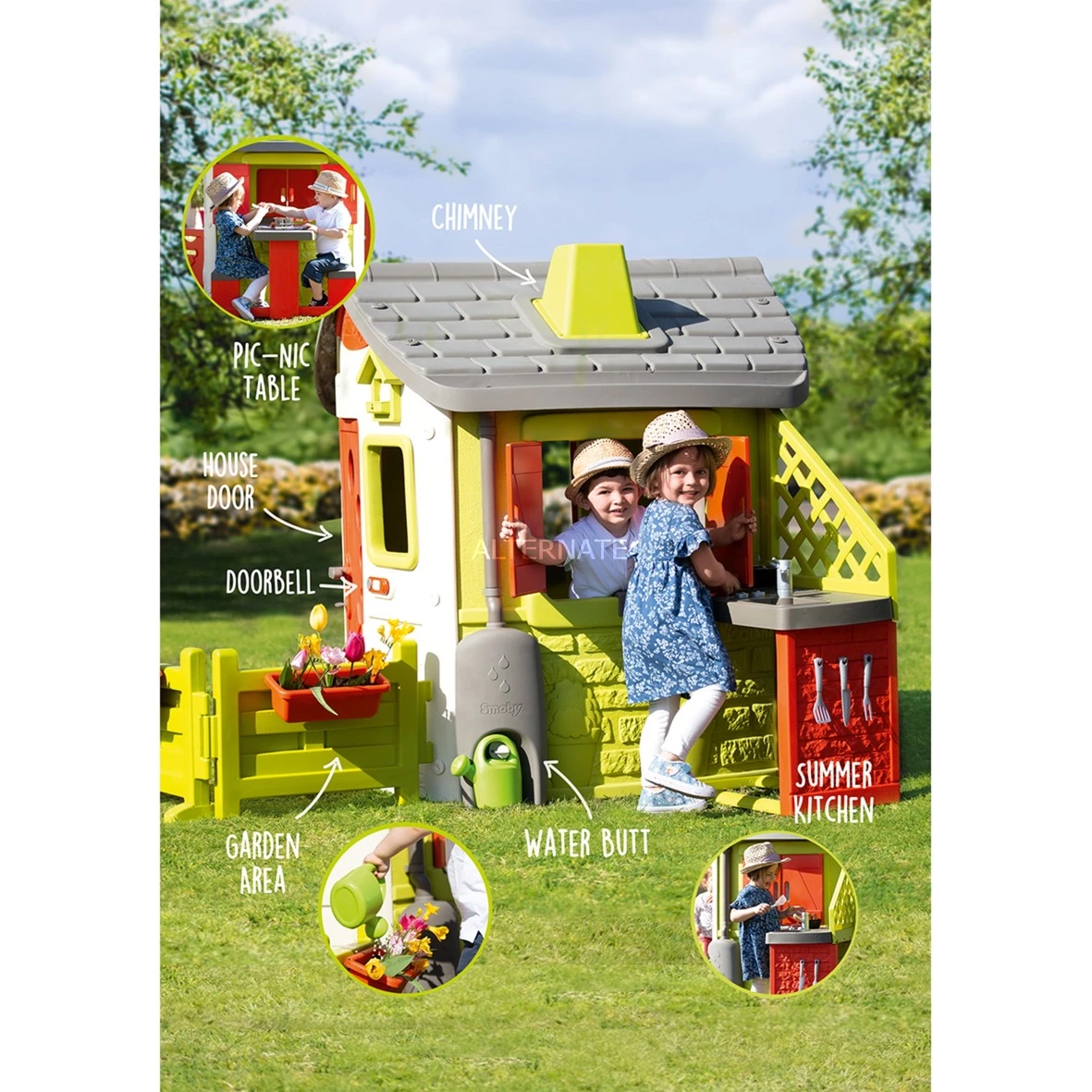 Die Neo Jura Lodge von Smoby bietet viel Platz zum Spielen und Verstecken – im Garten oder auf der Terrasse. Dabei gehören zwei Fenster mit Fensterläden, zwei Fensterluken, Eingangstüren auf der Vorder- und Rückseite und ein Briefschlitz zur Standardausstattung, die aber mit separat erhältlichen Produkten noch deutlich erweitert werden kann. Dieses Spielhaus ist einfach zu montieren und dank UV-stabilem Kunststoff widerstandsfähig gegen Wettereinflüsse.