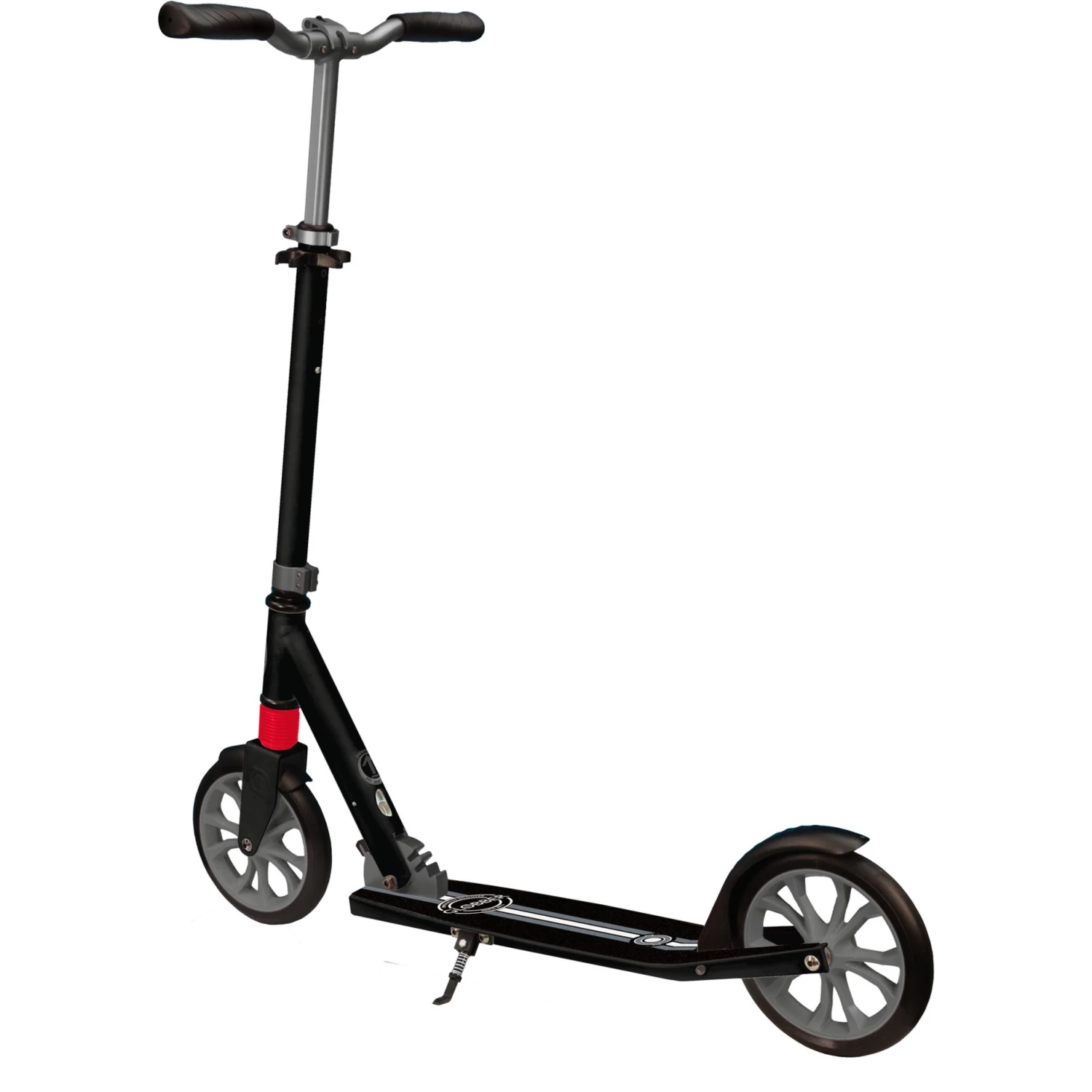 Große Räder, tolle Technik: Der NL 205 rollt auf gegossenen PU-Rollen mit einem Durchmesser von 205 Millimetern und ABEC 7 Kugellagern. Dieser Scooter für Kinder, Jugendliche oder Erwachsene hat eine Hinterradreibungsbremse mit rutschfestem Bremspedal. Mit dem extra breiten Lenker im BMX-Stil mit ergonomischen Griffen und einer Lenkstange, die von 98 bis 108 cm verstellbar ist, bleibt der NL 205 auch dank der Frontfederung in jeder Fahrsituation kontrollierbar. Das extra tiefe Deck aus Aluminium hat eine weiche Antirutsch-Trittfläche. Dieser Scooter ist für ein maximales Nutzergewicht von 100 Kilogramm ausgelegt. Mit dem einfach zu handhabenden Klappmechanismus ist der NL 205 blitzschnell zusammengefaltet und kann dann wie ein Trolley gezogen werden.