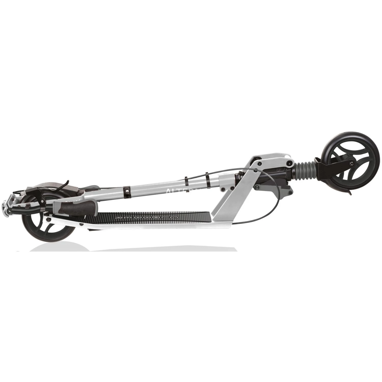 Der One K 165 Deluxe ist nicht nur hochwertig verarbeitet, sondern zusammengeklappt auch wie ein Trolley ziehbar. Dieser Scooter mit einer Tragkraft von maximale 100 Kilogramm verfügt über eine Handbremse und eine Frontfederung. Dabei rollt dieser Scooter auf gegossenen PU-Rollen (Durchmesser 165 mm, Breite 40 mm) mit ABEC 7 Kugellagern und verfügt über eine Hinterradreibungsbremse aus Aluminium. Der extrabreite Lenker im BMX-Stil ist mit ergonomischen Griffen ausgestattet. Die Lenkstange lässt sich von 93 bis 108 Zentimeter in der Höhe verstellen. Das Deck mit Antirutsch-Trittfläche besteht aus Aluminium.