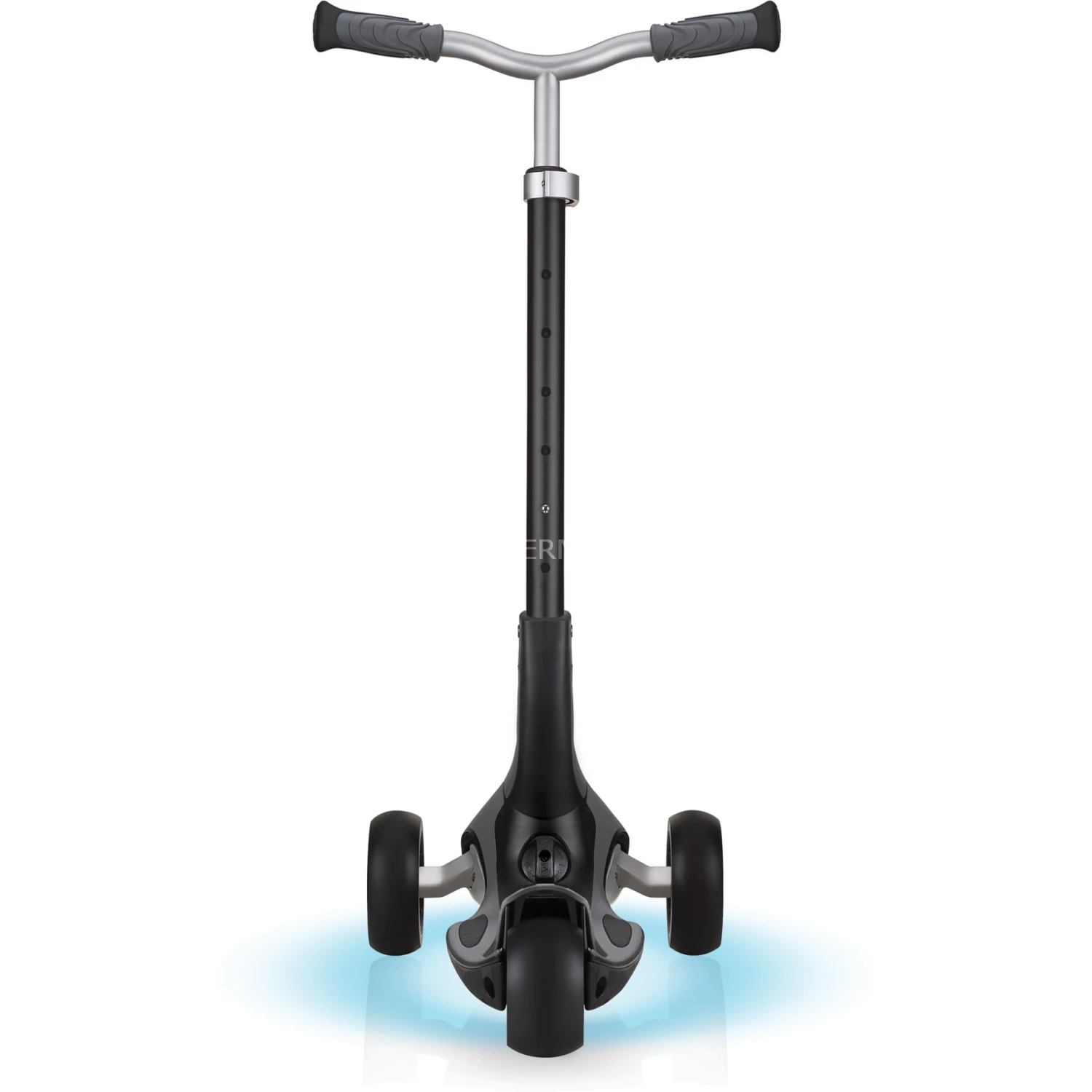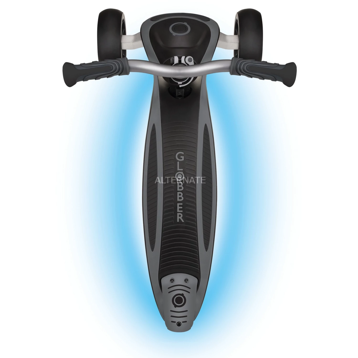 Tolles Design, hohe Flexibilität: Der Ultimum Lights ist ein Scooter für die ganze Familie. Er steht auf drei gegossenen PU-Rollen mit einem Durchmesser von 125 Millimetern (vorne) und 90 Millimetern (hinten), die mit ABEC 7 Kugellagern gelagert sind. Gesteuert wird der Ultimum Lights über das innovative, per Drehknopf anpassbare Lenkwinkelsystem. Das extra tiefe Deck hat an der Unterseite ein mehrfarbiges LED-Leuchtmodul mit 12 Leuchteinstellungen und USB-Anschluss zum Laden. Dieser hochwertige Scooter ist faltbar und bietet den praktischen Trolley-Modus zum Transport. Er ist für ein maximale Benutzergewicht von 100 Kilogramm ausgelegt.