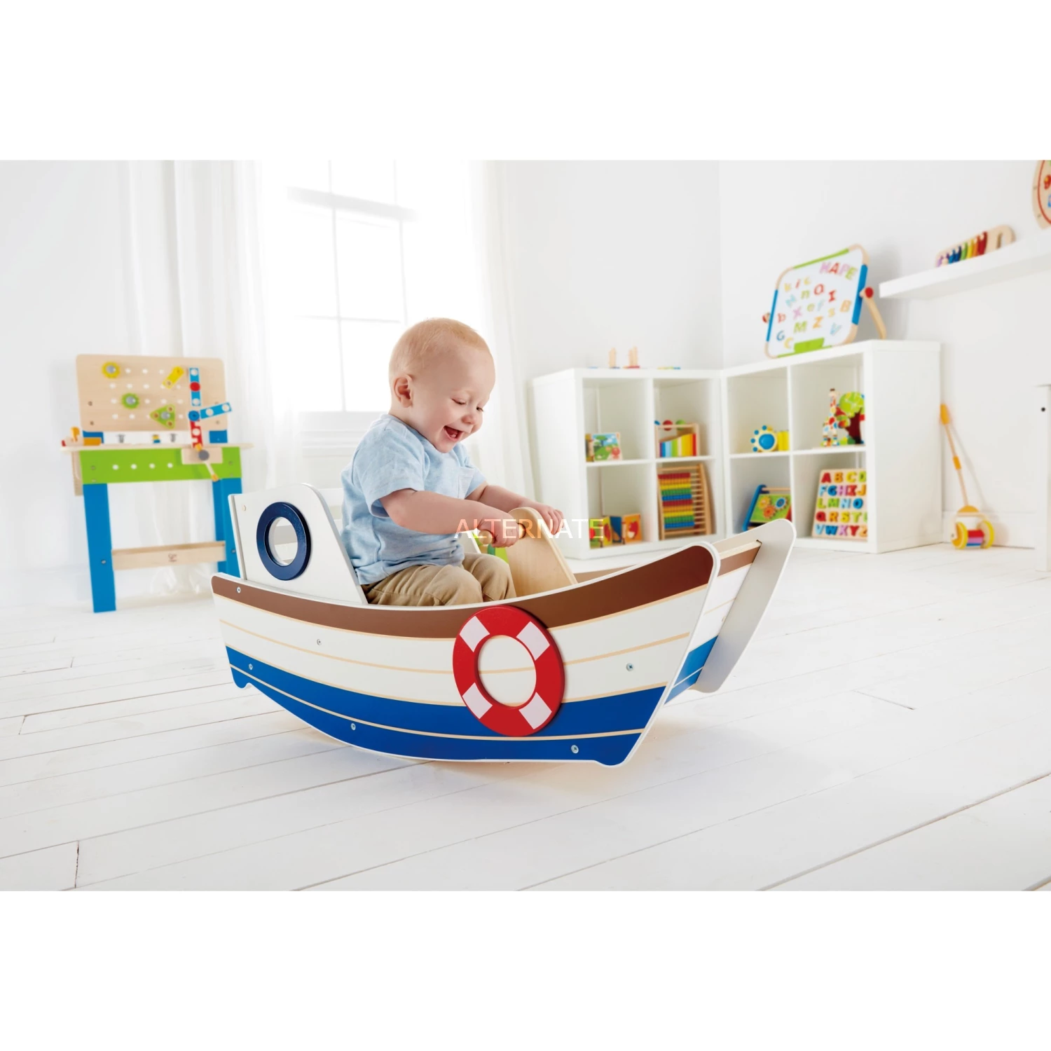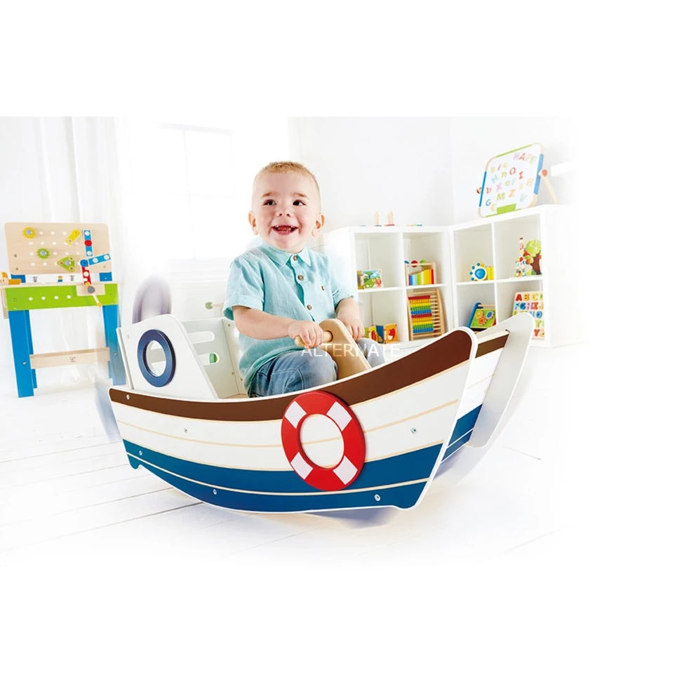 Der Wellenschaukler von Hape ist kein Schaukelpferd – funktioniert aber ganz ähnlich: In diesem stabil gebauten Holzboot mit Bullaugen und einem Anker können Kinder ab 12 Monaten tolle Hochseeabenteuer erleben. Und dabei fröhlich losschaukeln. Ein tolles Spielerlebnis – fast wie auf hoher See!