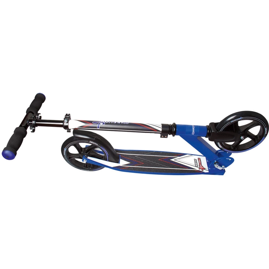 Der Scooter 205 mm besteht aus hochwertigem Aluminium mit verstärkter Vorderradgabel hat eine Tragkraft von 100 kg. Der Lenker kann in der Höhe von 77 – 97 cm eingestellt werden. Das tiefergelegte XL-Deck hat die Maße von 58 x 12 cm. Der Scooter ist mit 205 mm PU Rollen 82 A, ABEC 7 Kugellagern und einem Anti-Slip Bremspedal mit gestanztem Logo und Ständer ausgestattet. Durch einen optimierten Mechanismus kann der Scooter bequem zusammen geklappt werden.