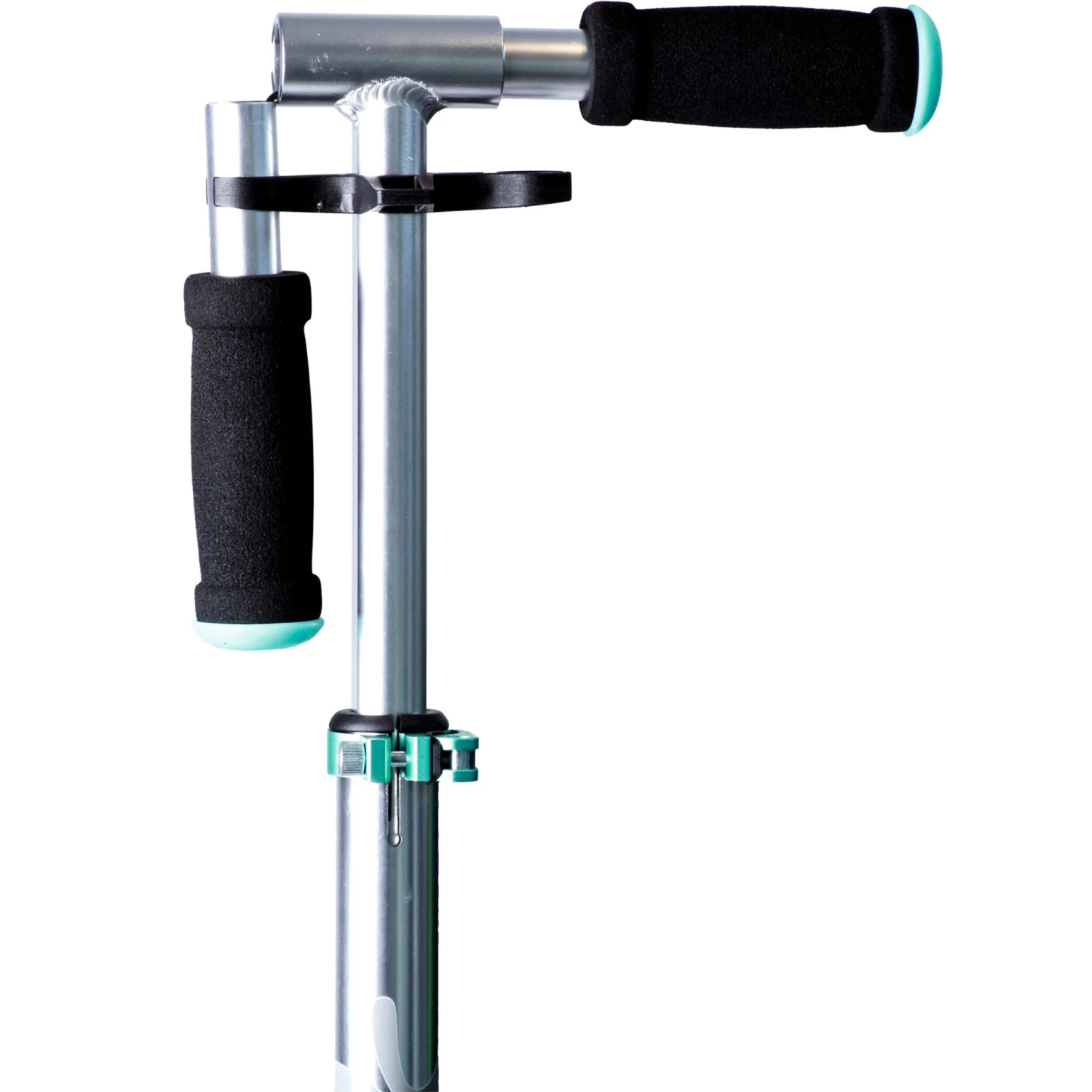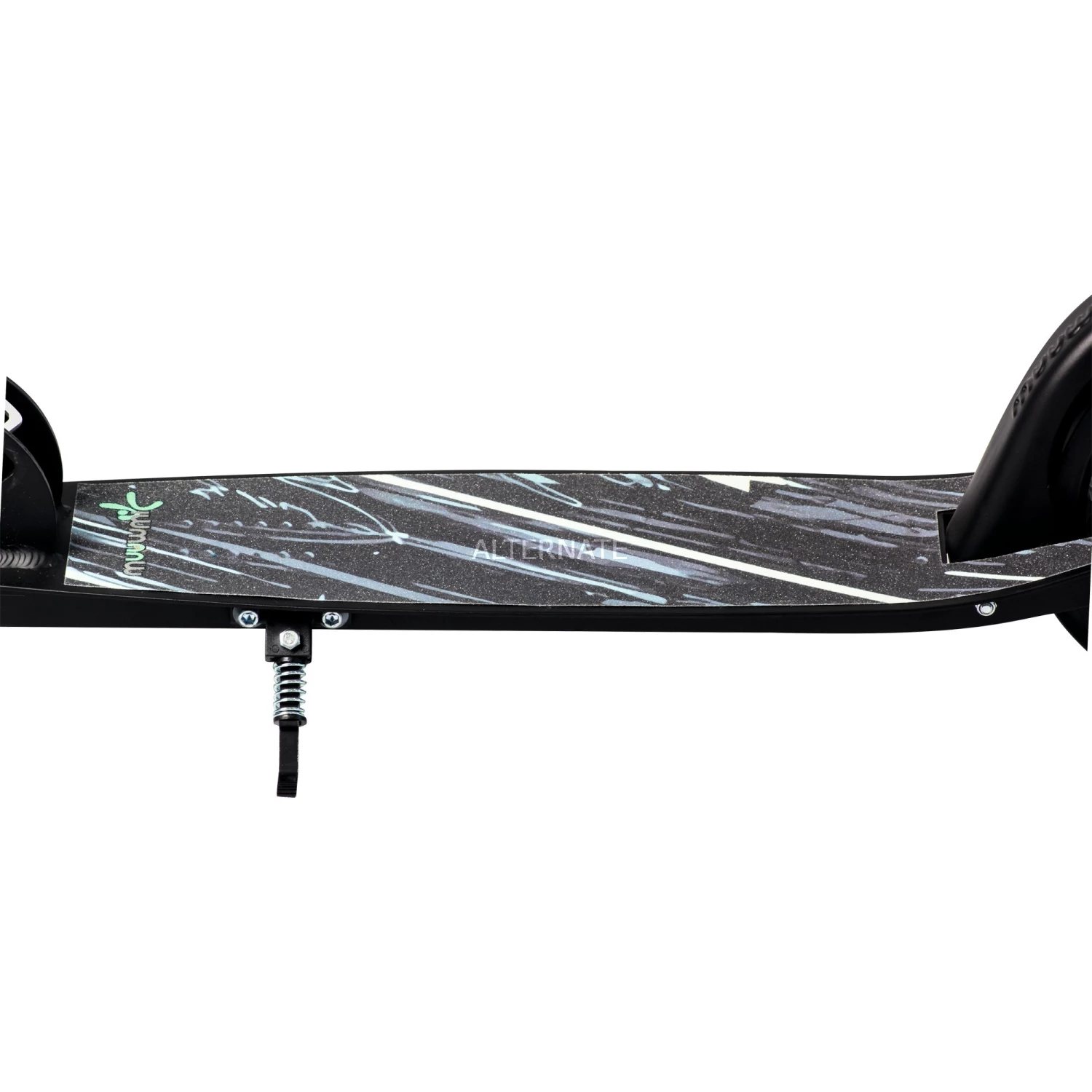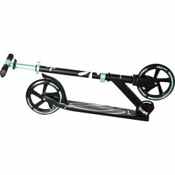 Der Scooter 205 mm besteht aus hochwertigem Aluminium und hat eine Tragkraft von bis zu 100 Kilogramm. Der Lenker kann in der Höhe von 77 – 97 cm eingestellt werden. Das extra tiefe XL-Deck hat die Maße von 58 x 12 cm. Der Scooter ist mit 205 mm PU-Rollen 82 A, ABEC 7 Kugellagern und einem Anti-Slip Bremspedal ausgestattet. Mit einem einfachen Mechanismus kann der Scooter außerdem bequem zusammengeklappt werden. Ein Ständer ist ebenfalls integriert.