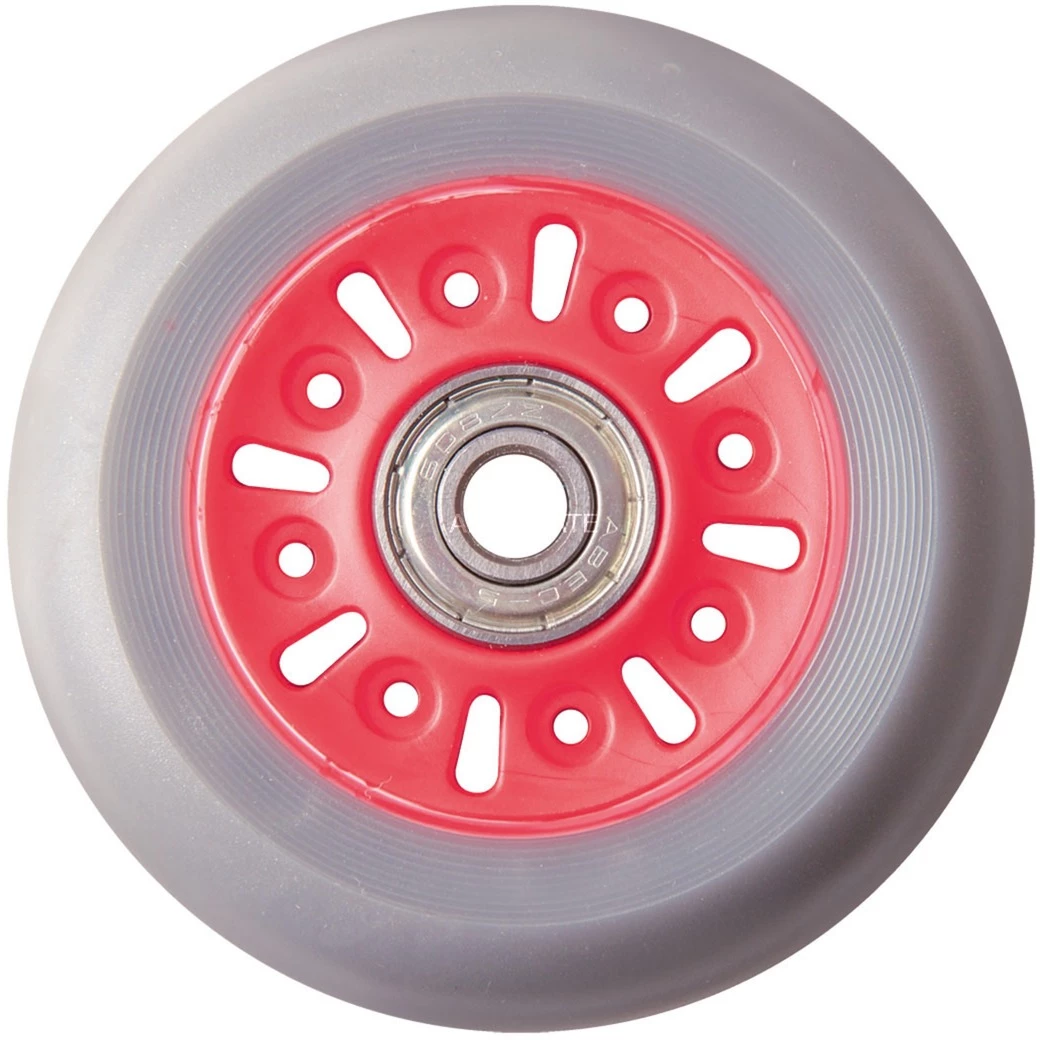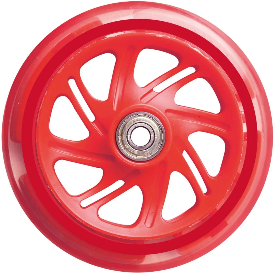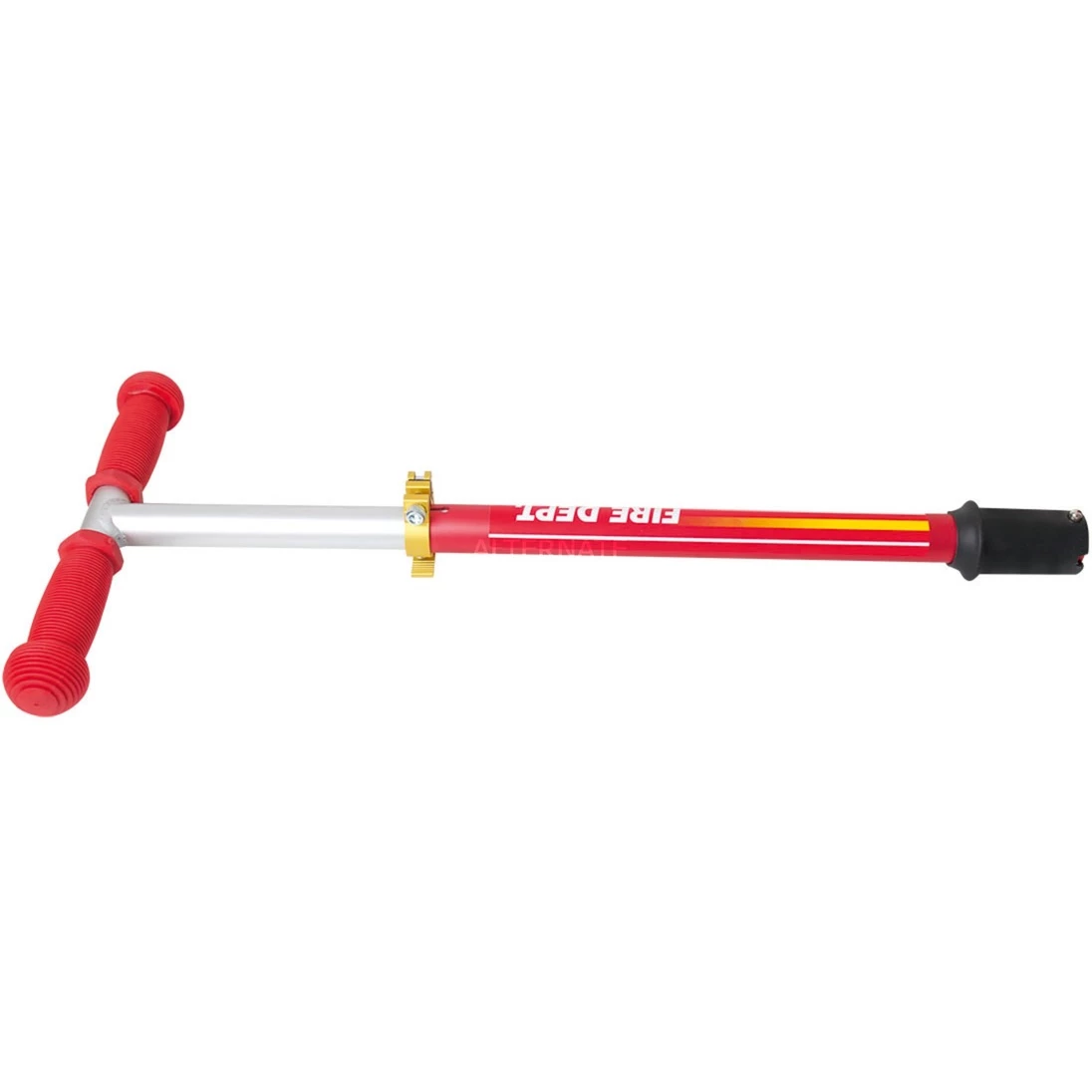 Der Muuwmi Kids-Scooter im Feuerwehr-Design bietet für kleine Fahrer die „easy direction“ Lenkung und Vorderräder mit Leuchtrollen. Der Lenkereinschlag ist einstellbar. Das High Impact transparentes PC-Kunstoffdeck ist mit Fiberglas verstärkt und die Trittfläche ist 29 x 12 cm groß. Die Aluminium T-Bar ist bis zu einer Lenkerhöhe von 66 cm verstellbar und kann abgenommen werden. Die Soft-Komfort Griffe sind mit Sicherheitsendkappen ausgestattet. Für mehr Fahrspaß sorgen die PU High Rebound Rollen 82 A, vorn 120 mm und hinten die extra breite hinten 80 x 30mm Rolle sowie das ABEC 5 Kugellager. Der Kinderscooter bietet eine maximale Belastbarkeit von 50 kg und verfügt über eine sehr breite High Impact PP Kunststoffbremse.