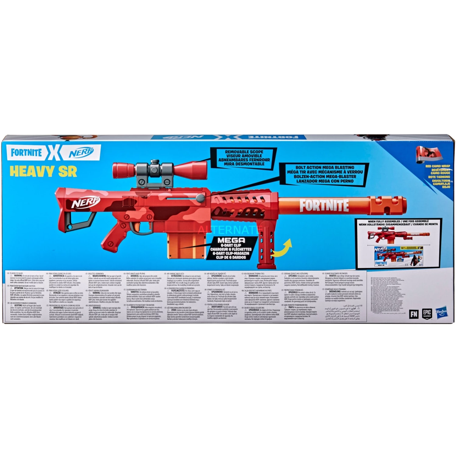 | Inhalt/Ausstattung | Fortnite, Heavy, SR, Blaster, 6-Dart, Clip-Magazin, Abnehmbares, Fernrohr, 6, Mega, Darts |
