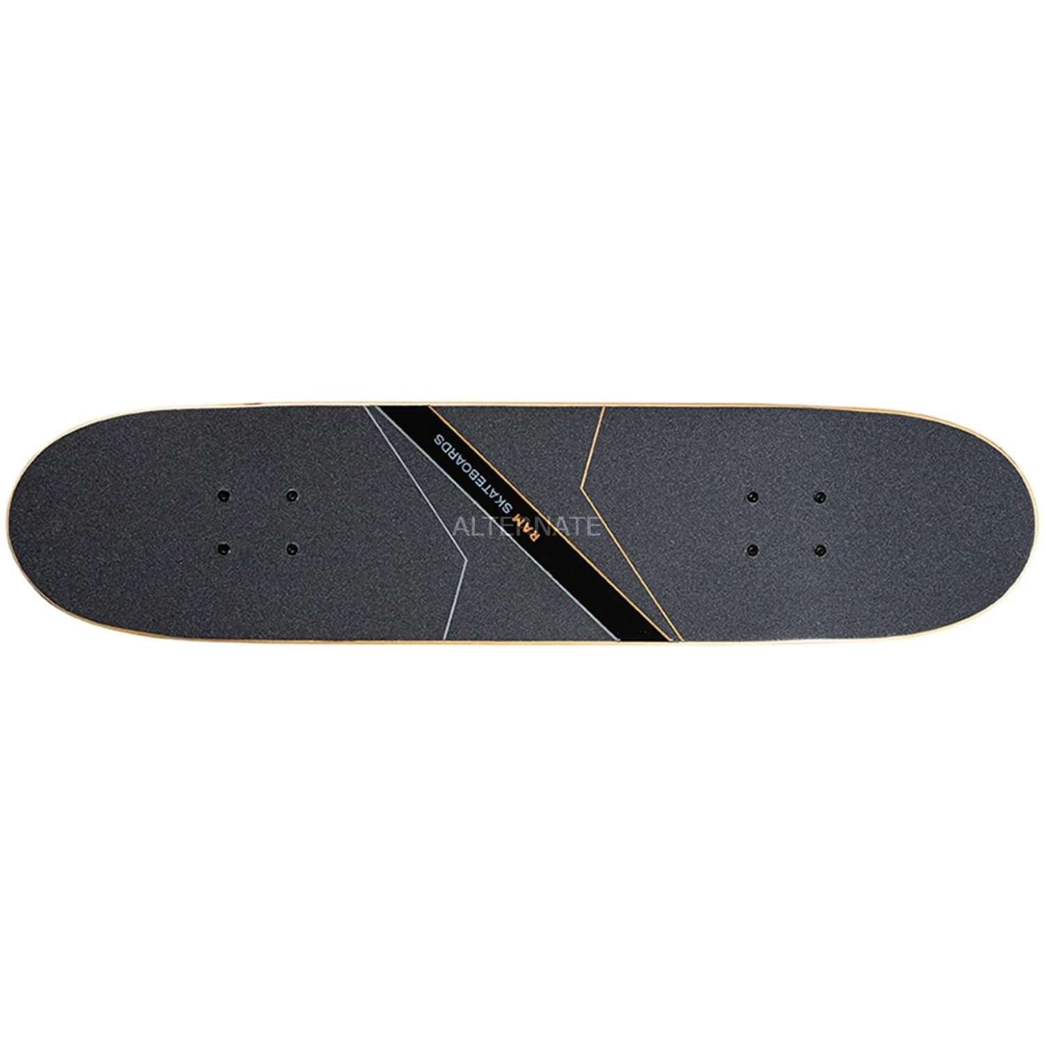 Das Skateboard Torque Onyx von RAM besticht mit stilvollem Design und einem 7-lagigem Deck aus Ahorn sowie strapazierfähigem Griptape. Es rollt auf 90A Polyurethan-Rollen und ABEC-7 Kugellagern aus Carbonstahl. TORTOISE-Achsen sichern solide Performance und einen hohen Fahrkomfort. Das Deck in klassischer Form hat eine Größe von 77,5 x 18,4 Zentimetern und Double Kick für hohe Flexibilität im Park.