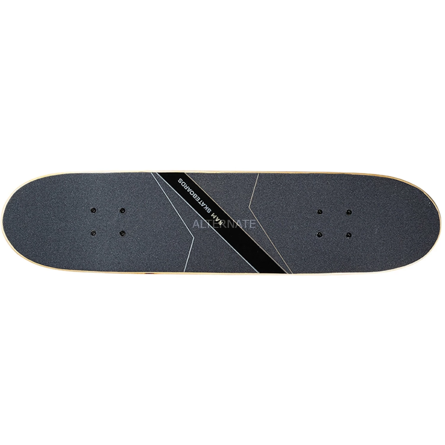 | Inhalt/Ausstattung | 7-lagiges, Deck, aus, russischem, Ahorn, (77, 5, x, 18, 4, cm), Doppel-Kick, 5", TORTOISE-Achsen, aus, Gusslegierung, mit, PU-Lenkgummis, (HR95A), Polyurethane-Rollen, (54, x, 32, mm), Härtegrad, 90A, ABEC-7, Kugellager, aus, Karbonstahl, Griptape, mit, Ausschnitt, bedruckt |