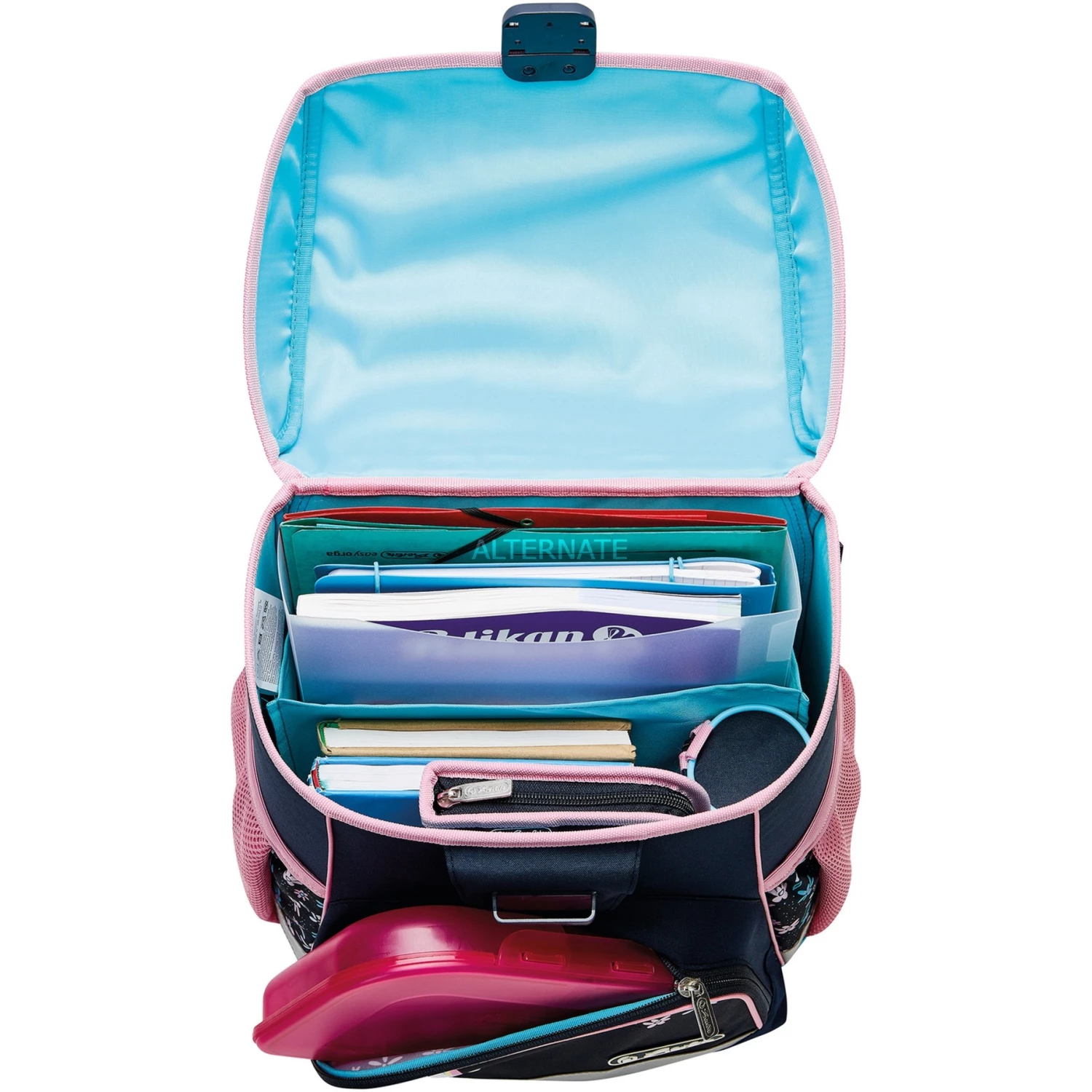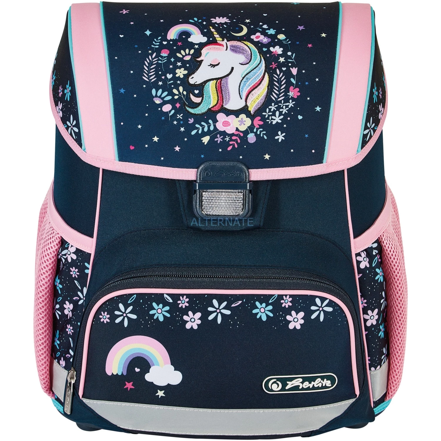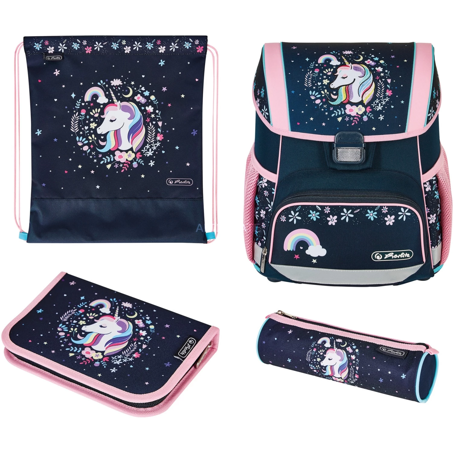 Schulbedarf Herlitz Loop Plus Unicorn, Schulranzen (dunkelblau/rosa, Inkl. 16 Tlg. Schüleretui, Faulenzermäppchen, Sportbeutel)