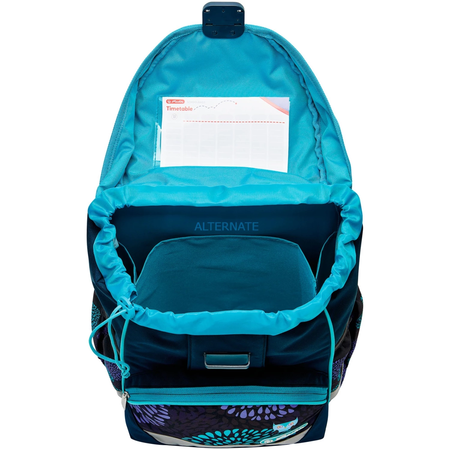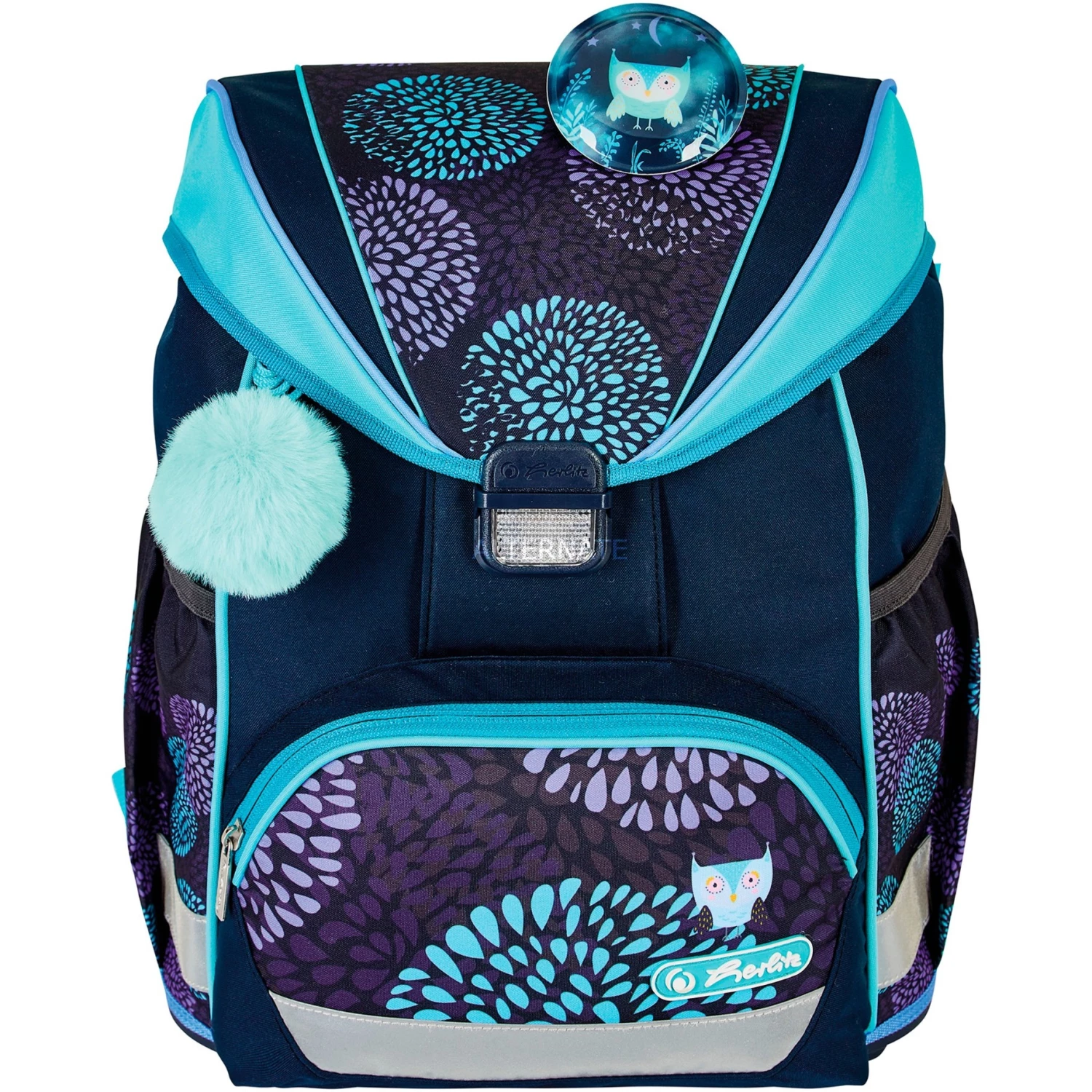 Schulbedarf Herlitz UltraLight Plus Flower Owl, Schulranzen (blau/lila, Inkl. 16 Tlg. Schüleretui, Faulenzermäppchen, Sportbeutel)