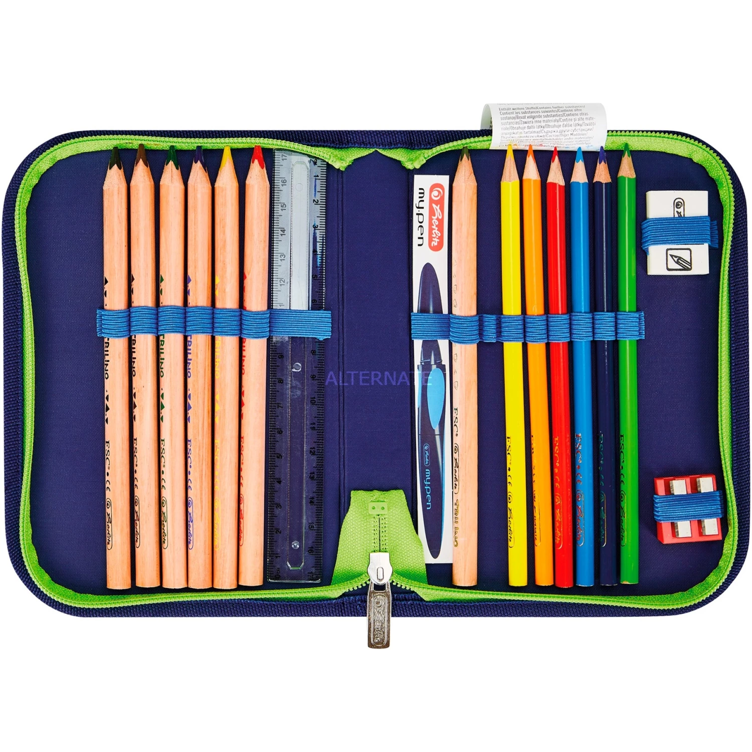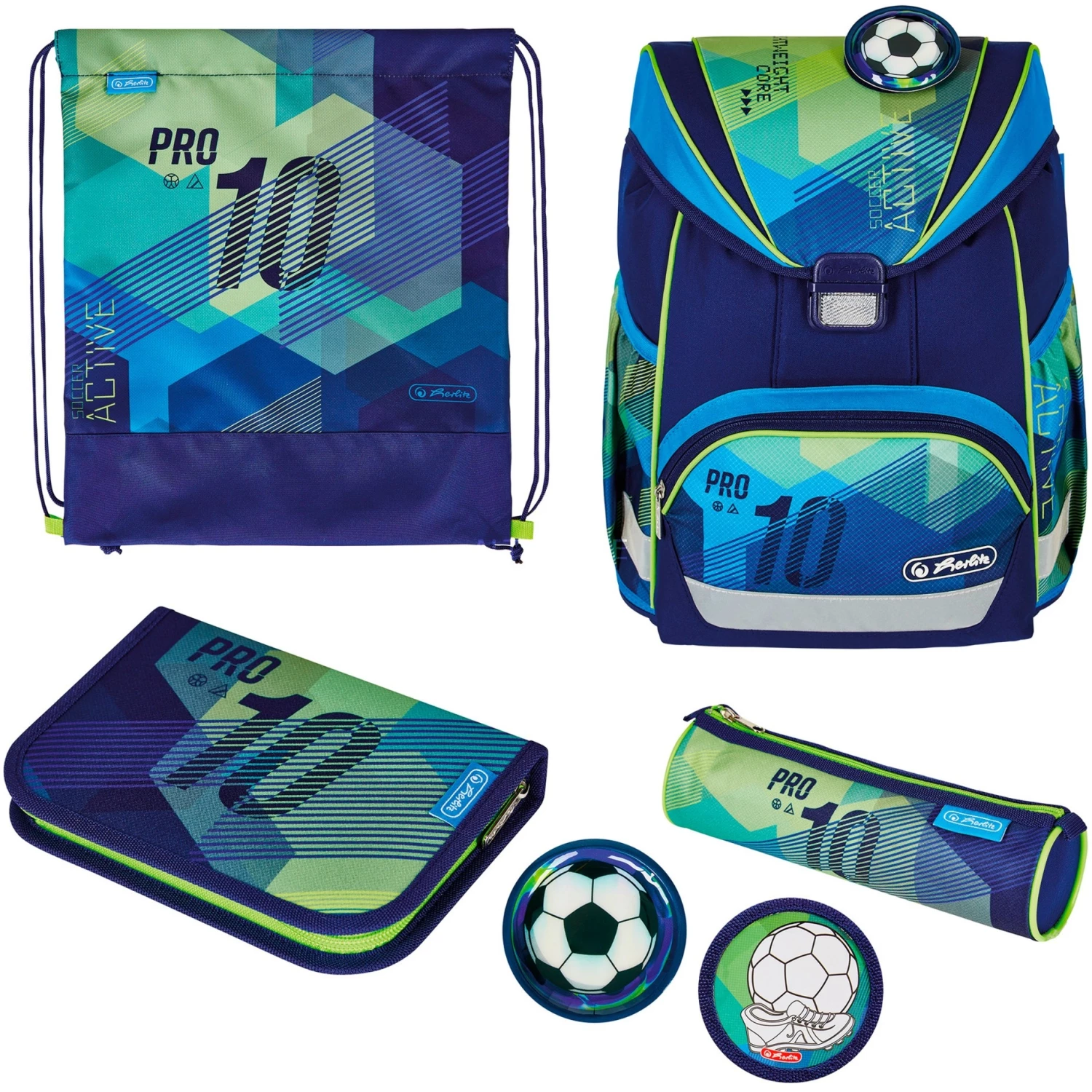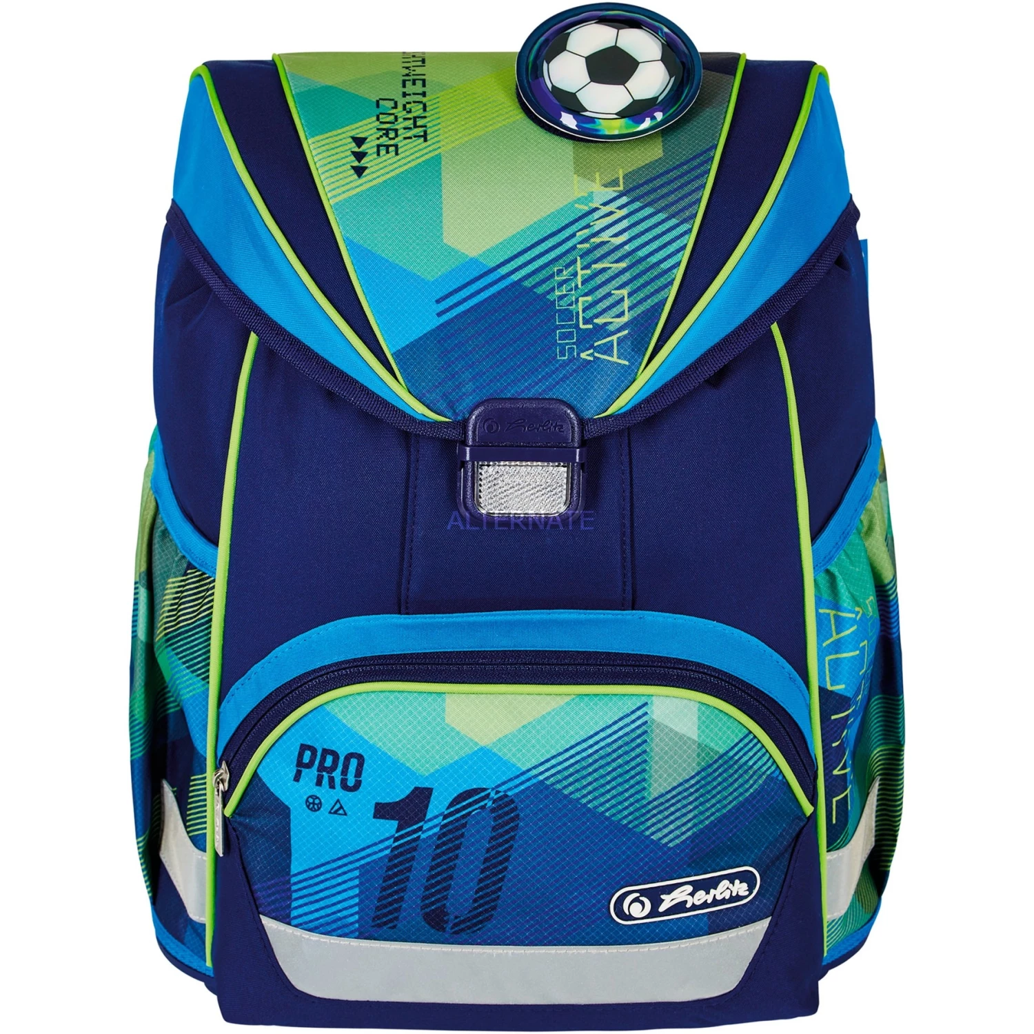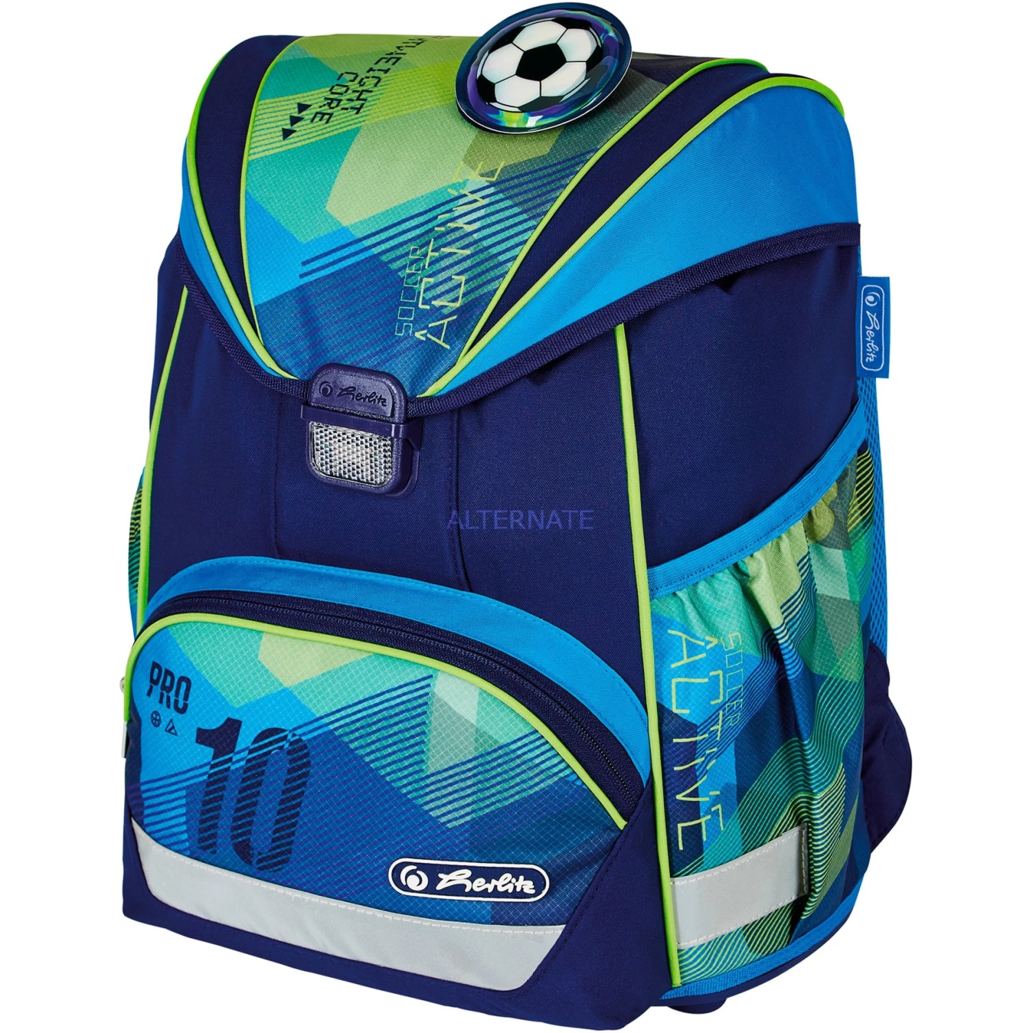 Schulbedarf Herlitz UltraLight Plus Green Goal, Schulranzen (blau/grün, Inkl. 16 Tlg. Schüleretui, Faulenzermäppchen, Sportbeutel)