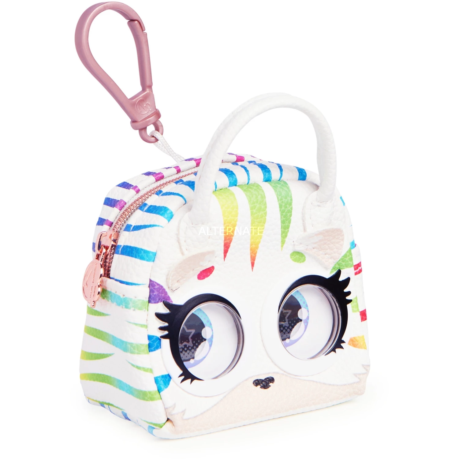 Für jeden Anlass das passende Handtäschchen? Mit den Micro Purse Pets geht dieser Traum für alle Mädchen und trendbewusste Erwachsene in Erfüllung. Verschiedene Tiercharaktere aus unterschiedlichsten Materialien mit liebevollen Details gestaltet bieten für jedes Outfit und jeden Event die Tasche, die zum modischen Statement wird. Zum absoluten Hingucker jedoch werden die Täschchen, wenn man den Reißverschluss betätigt, denn dann rollt das Tierchen mit den Augen. Der Tiger sticht mit seinem bunten Streifen besonders aus der Kollektion hervor. Aus hochwertigem genarbten Kunstleder gefertigt, harmoniert er mit hellen einfarbigen Outfits sowie gemischten Pastelltönen. Ob am Henkel getragen oder mithilfe des Klipps an einer großen Purse Pets Tasche (separat erhältlich), an Rucksack oder Gürtelschlaufe befestigt, erlaubt ist, was gefällt. Und wer sich nicht für ein Täschchen entscheiden kann, nimmt gleich mehrere mit. Die Micro Purse Pets bieten Platz für Geld, Lippenpflege, Haargummis und andere Kleinigkeiten.