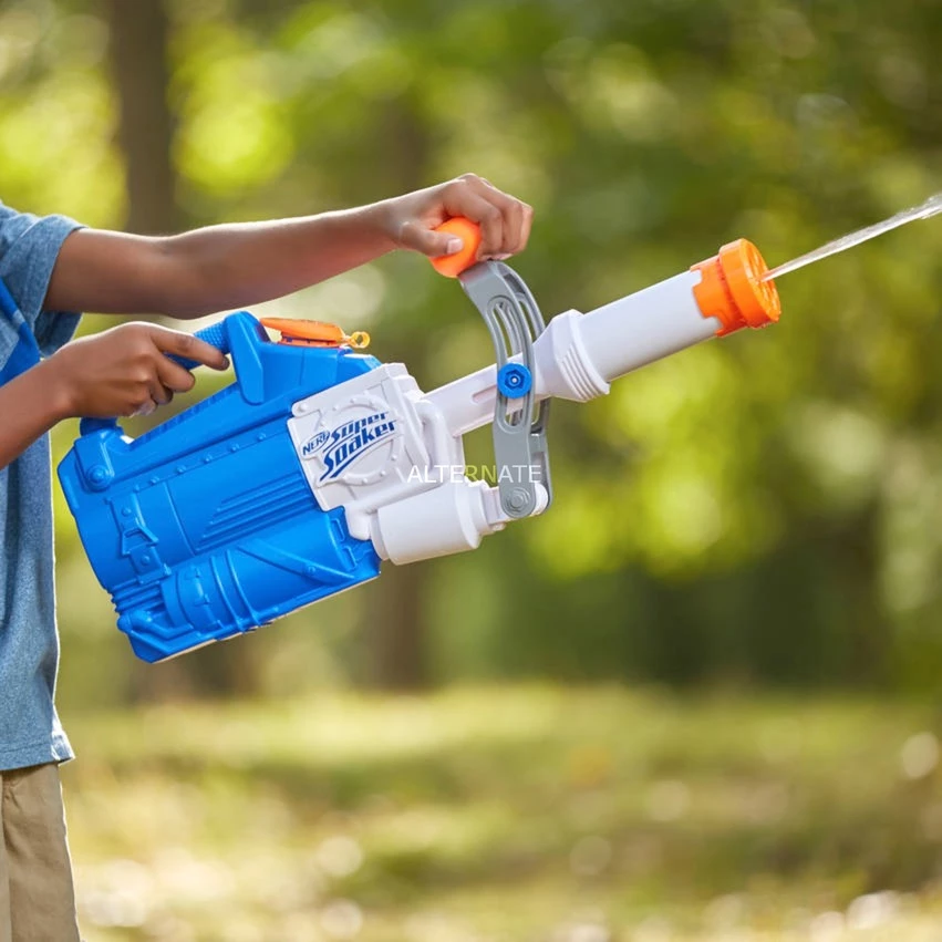 Massive Wasser-Action mit dem Nerf Super Soaker Soakzooka Blaster! Mit bis zu 1,6 Liter Wasser füllen, am Griff pumpen und nass spritzen!